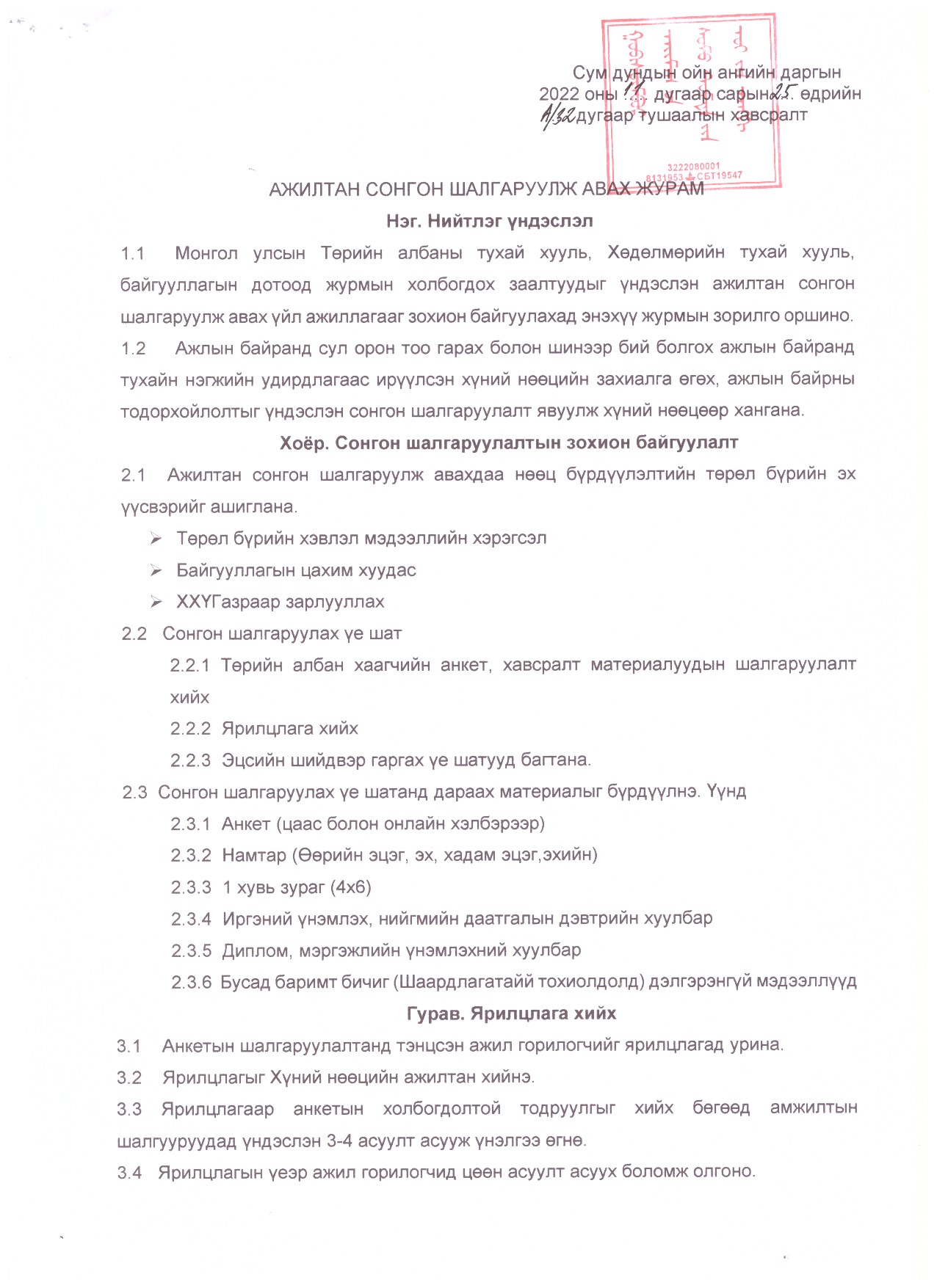 Ажилтан сонгон шалгаруулах журам